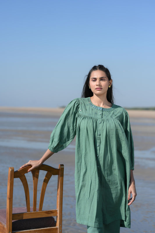 Green Mirror Cotton Co-Ord (Dress with Pant)