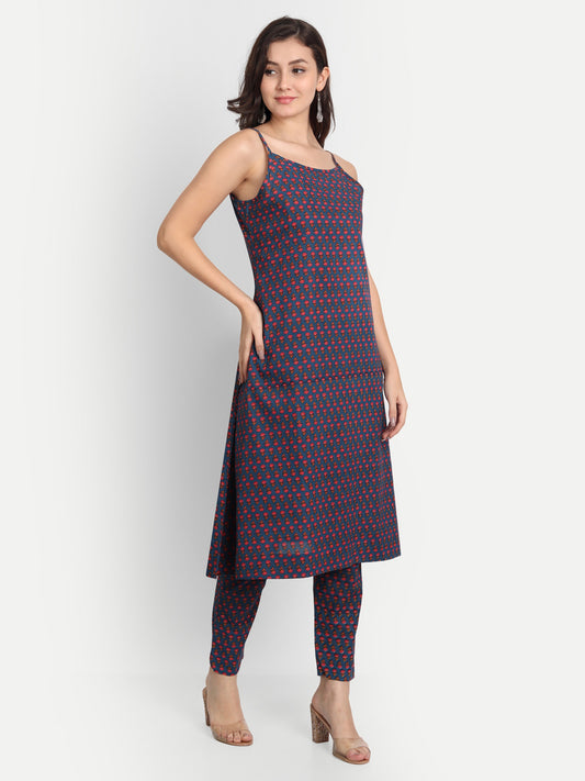 Red Bandhni and Leheriya Printed Tie-Up Straps Peplum Top and Flared Palazzo (Set of 2)