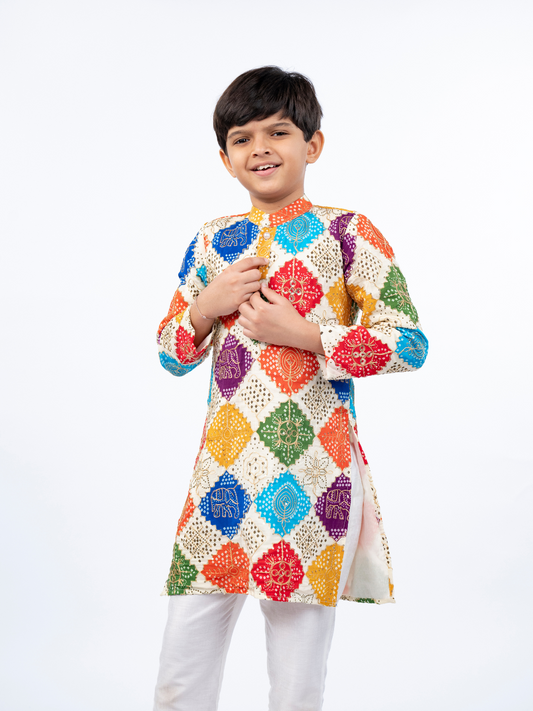 Cherry Screen Print Kurta, Bottom & Dupatta