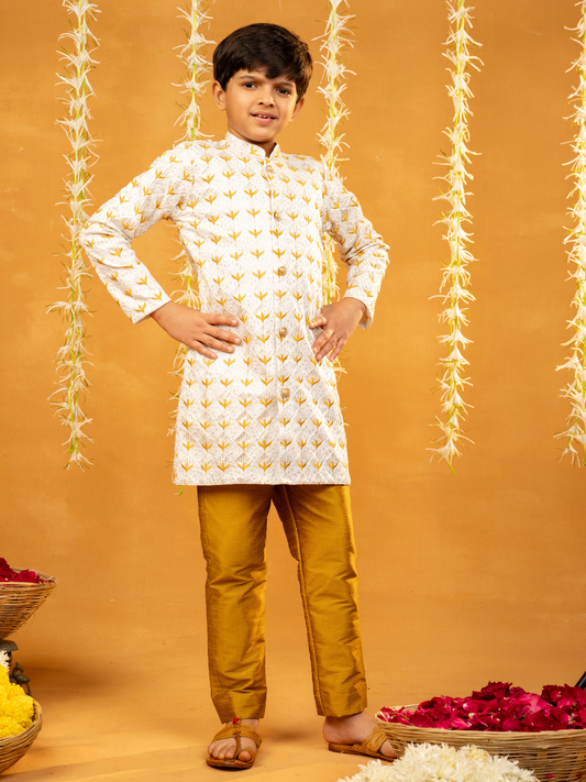 Embroidered Off-White Kurta and Mustard Coloured Pant (Set of 2)