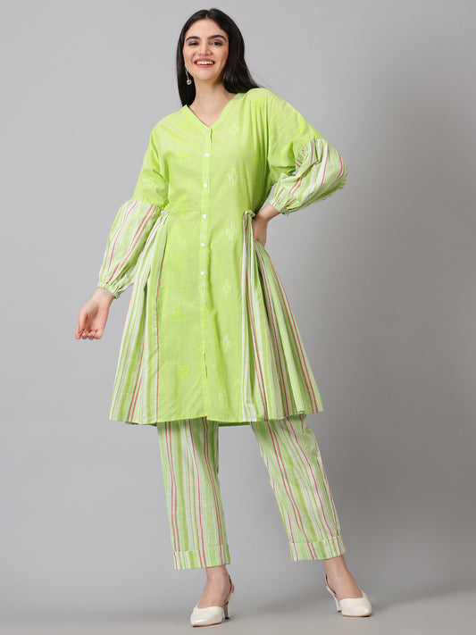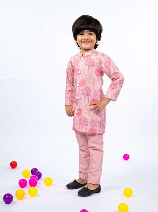 Flower Embroidered Petal Pink Kurta and Pant (Set of 2)