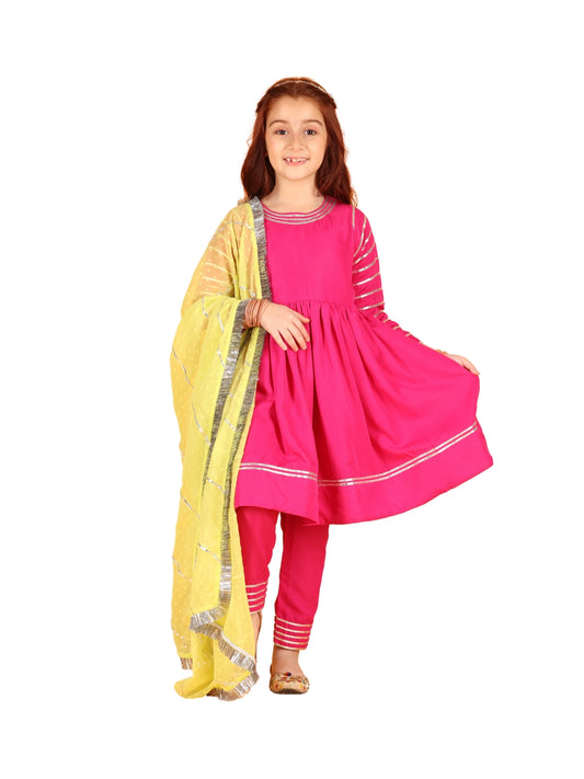 Jilmil Girls Magenta Dress with pant & Dupatta (set of 3)