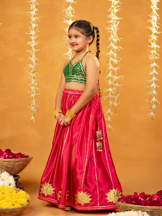 Jilmil Girls Gota Work Rani Pink Top And Elegant Tassels Embellished Flared Lehenga (set of 2)