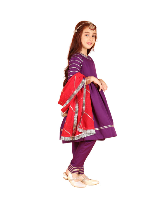 Jilmil Girls Violet Dress with pant & Dupatta (set of 3)