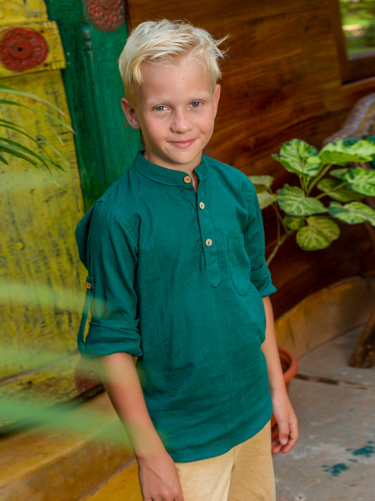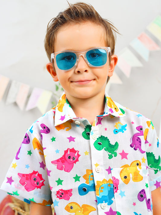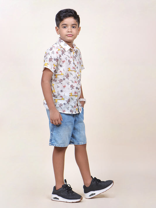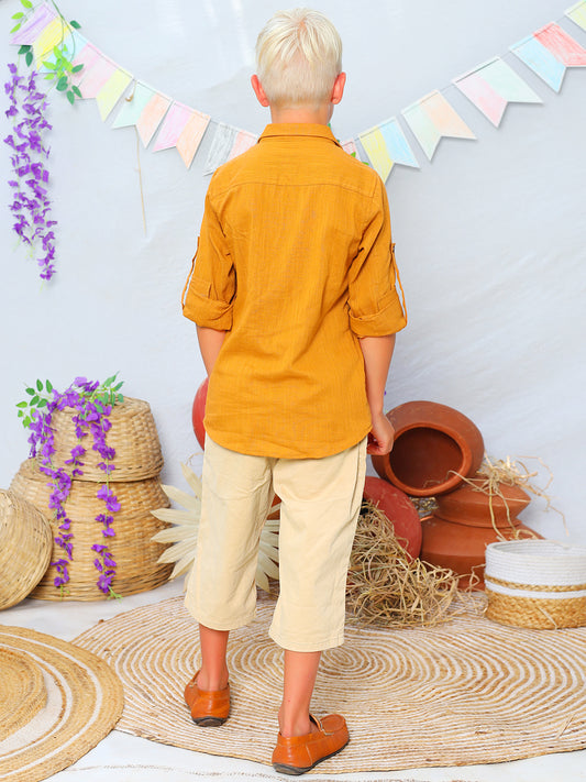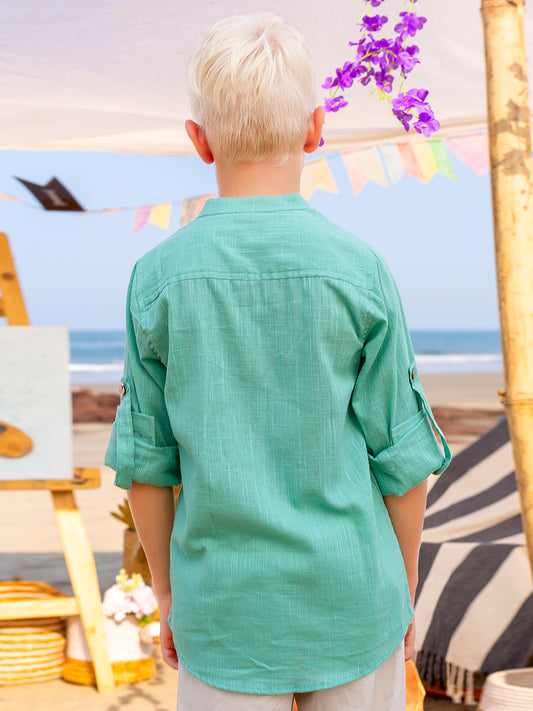 Boys Blue Colourblocked rolled up Cotton Shirt