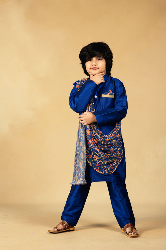 Boys Blue Crush cotton Drape Kurta with Pant