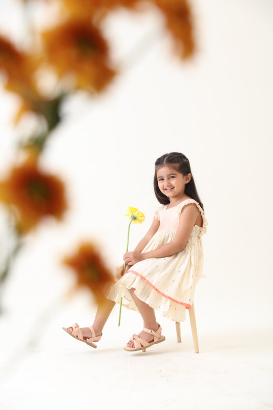 Girls Off-White Cotton Lurex Gathered Dress