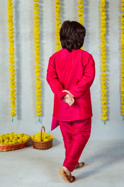Boys Pink Organza Kurta with pant