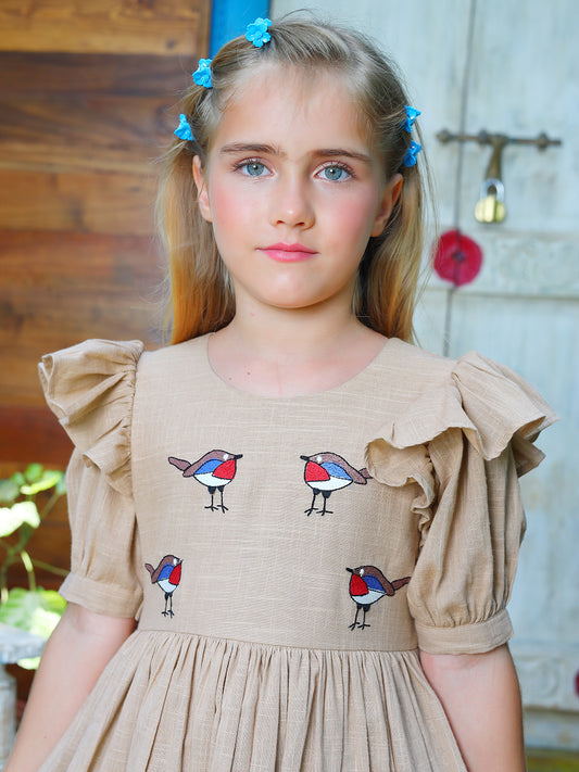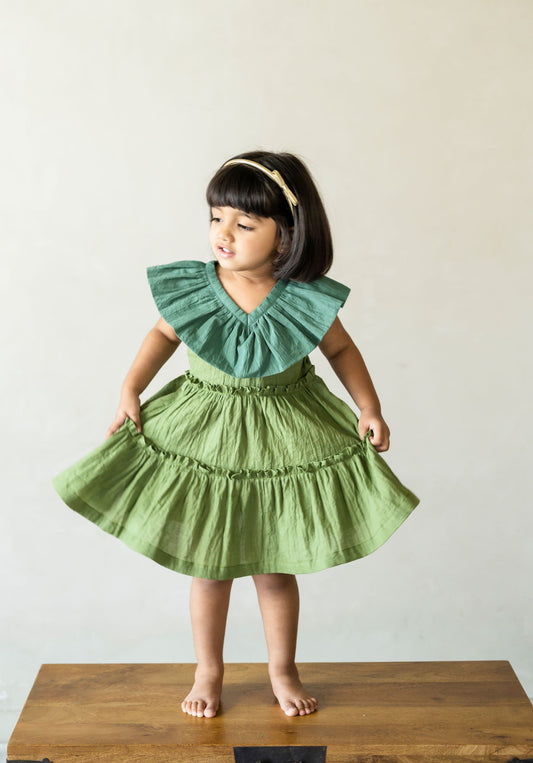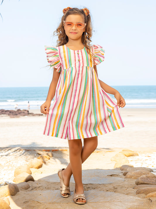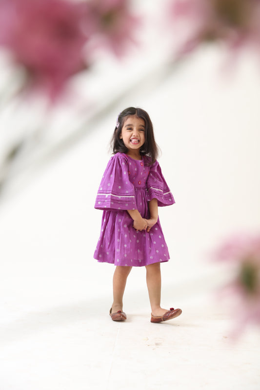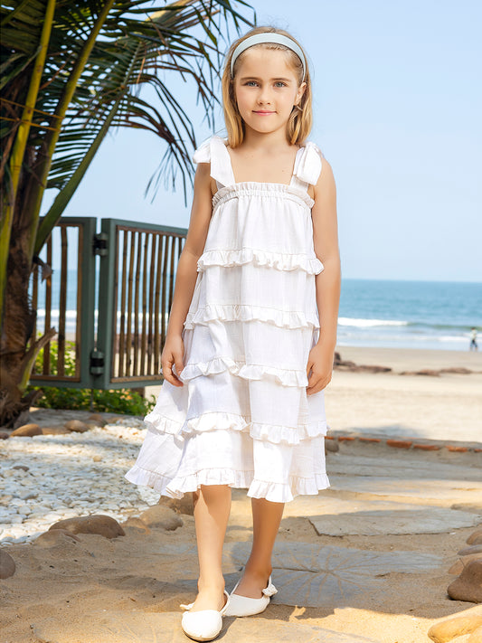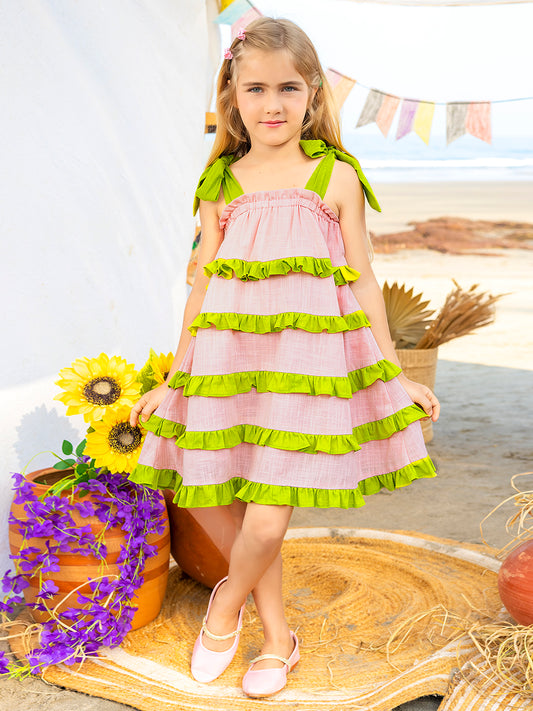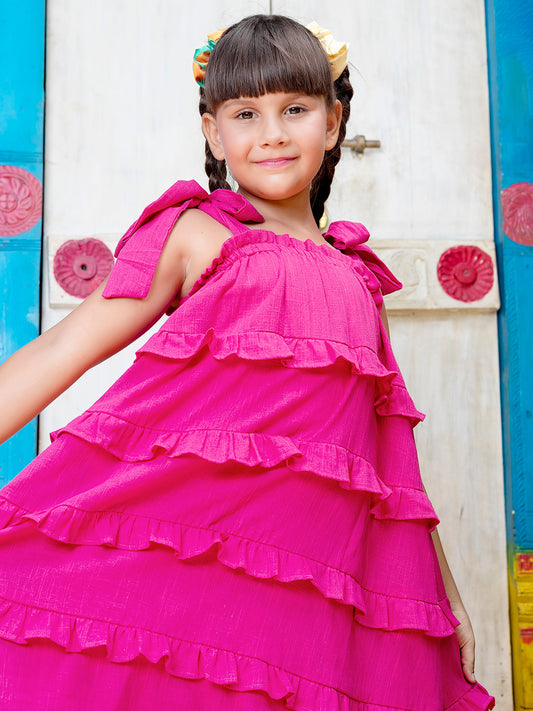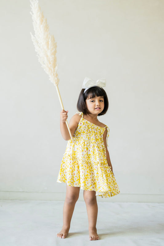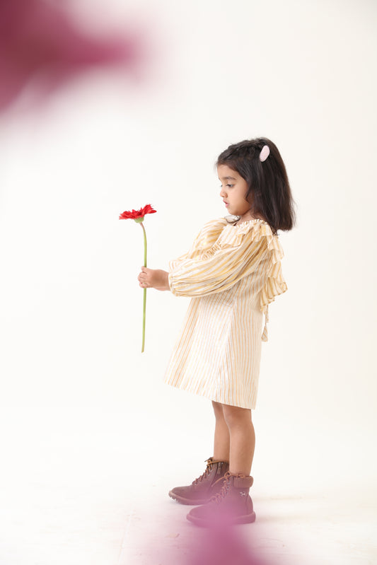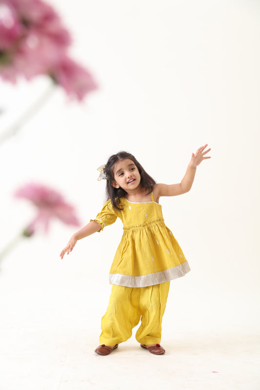 Girls Yellow Cotton Lurex Flounce Kurta Pyjama