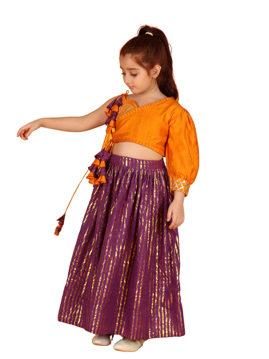Jilmil Girls Gota Work Orange Top And Elegant Tassels Embellished Flared Lehenga (set of 2)