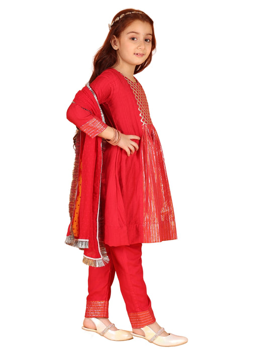 Jilmil Girls Magenta Dress with pant & Dupatta (set of 3)