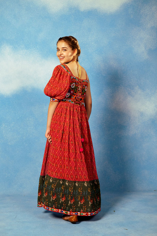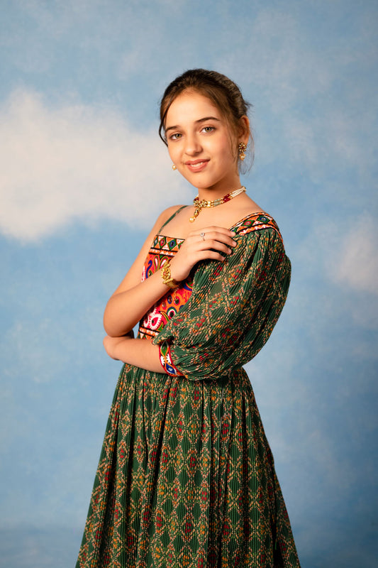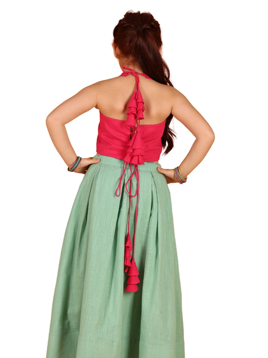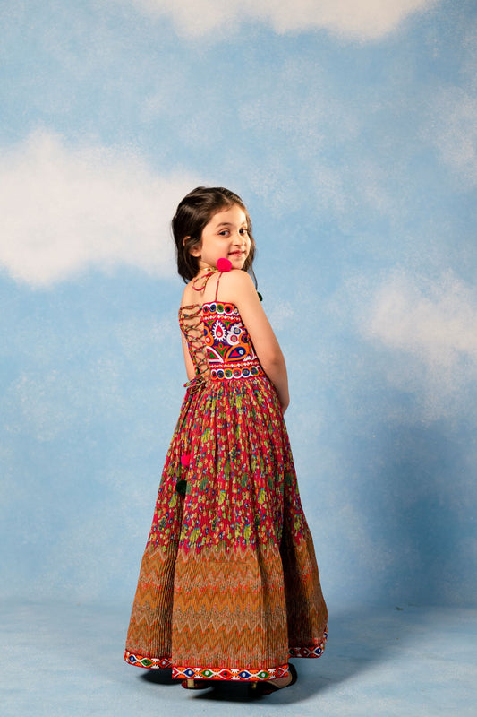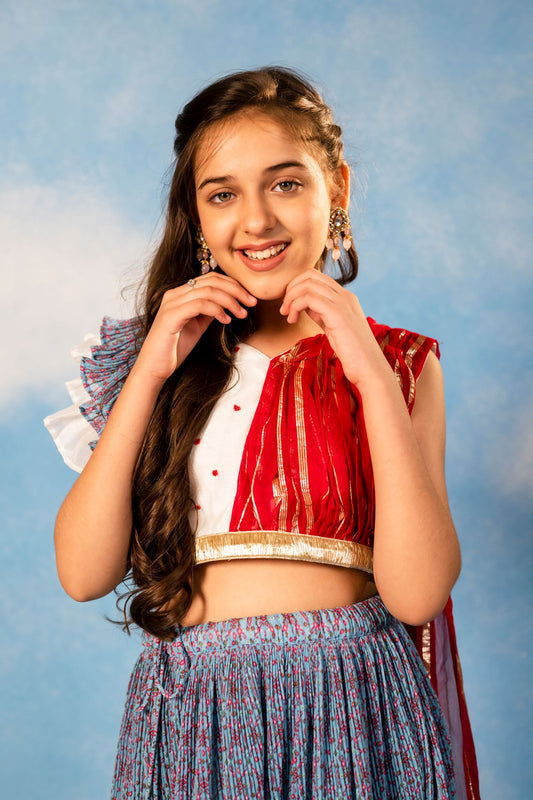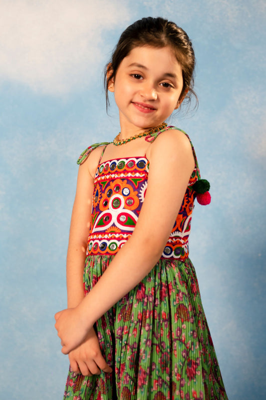 Jilmil Girls Mermaid Handembroidered Top with Multicolor cotton lehenga set (set of 2)