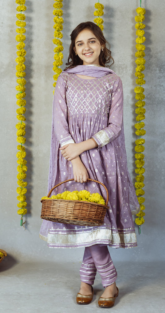 Jilmil Girls Violet Dress with pant & Dupatta (set of 3)