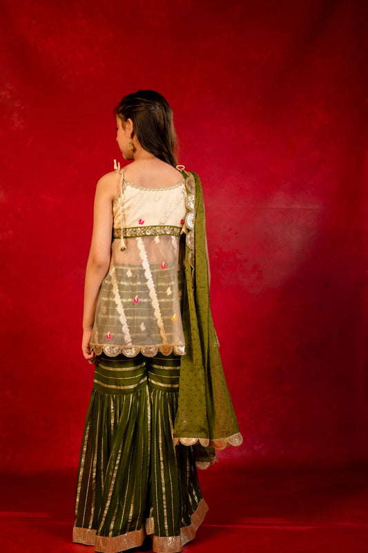 Jilmil Girls Sequence emblished Black cotton Crop top with Golden Lehenga (set of 2)