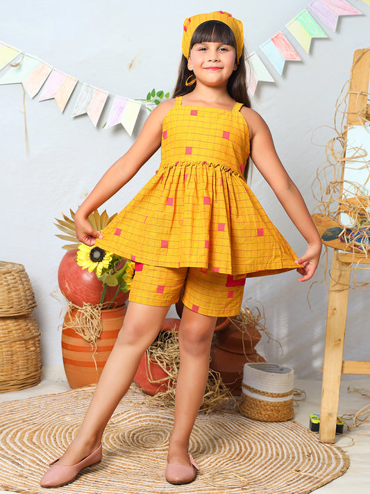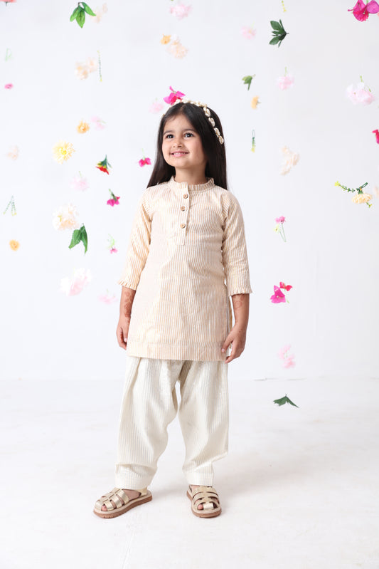 Girls Golden Stripe Lurex Cotton Kurti With Silver Stripe Patiala