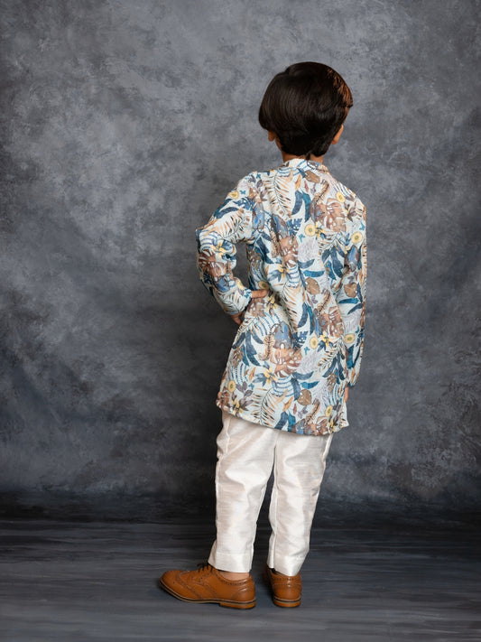 Boys Silk Kurta Pant with Multicolour Digital Printed Jacket (Set of 3)