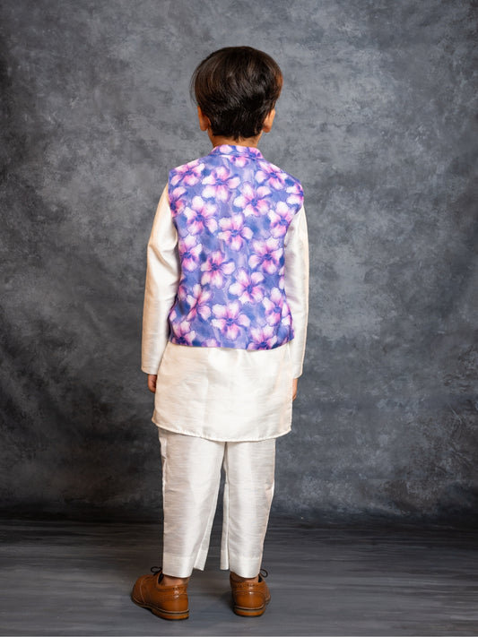 Boys Kurta Pant with Digital Printed Purple Jacket (Set of 3)