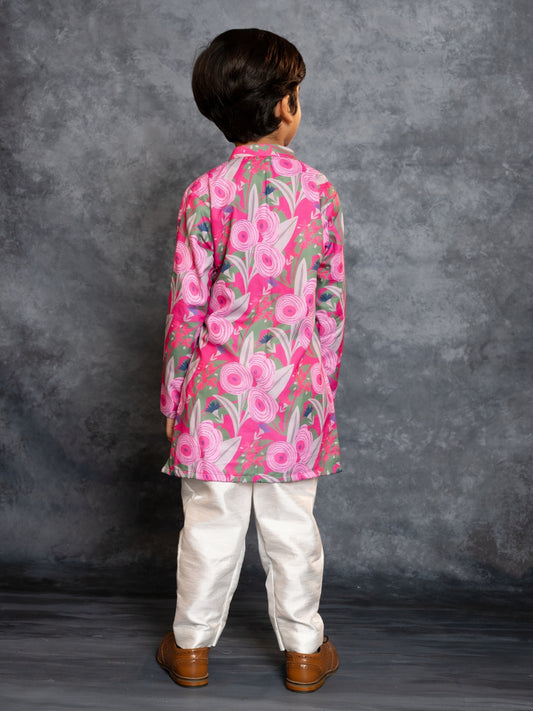 Boys Soft Cotton Digital Printed Pink Kurta with Banglori Silk Pant (Set of 2)