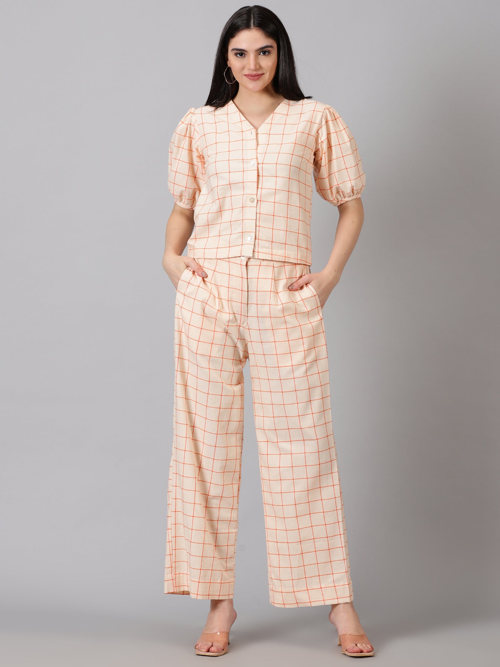 Make your day more special with this Handloom Cotton Co-Ord set, topped with an alluring v neck crop top & front button detail. It is finished with ankle-length palazzo for a modernized classic look. Perfect for a casual occasion team it with a piece of fine jewellery and sandals with a sling bag for the perfect look.