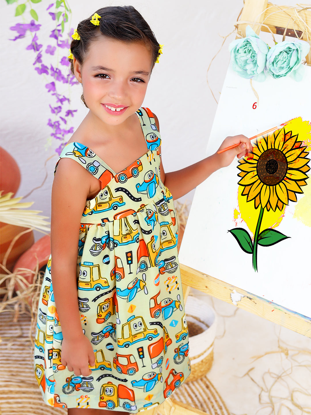 The dress transforms the little ones into princesses, and a nuanced new form of positive feeling is experienced. The kind of clothing that swings gently off the shoulder as they move. The elasticity at the rear works together to give it a clean appearance.