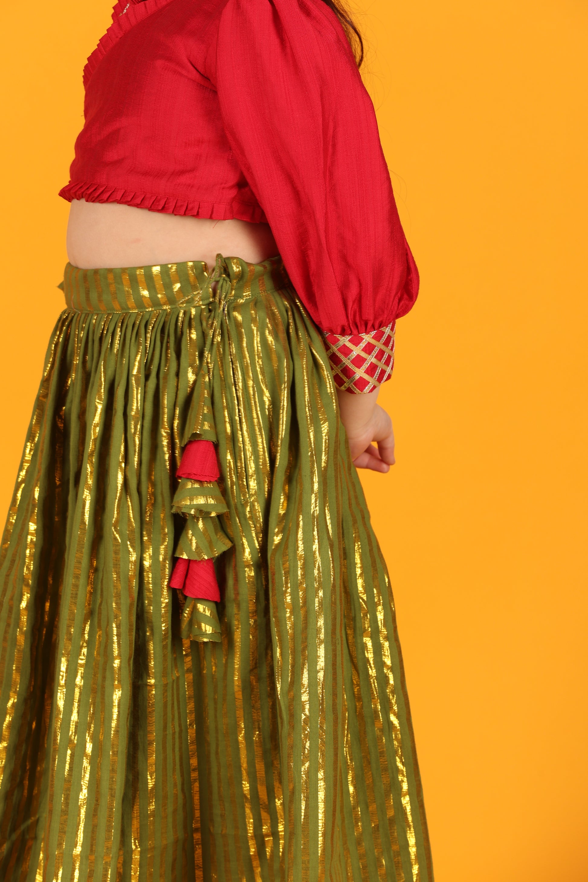 Jilmil Girls Gota Work Rani Pink Top And Elegant Tassels Embellished Flared Lehenga (set of 2)